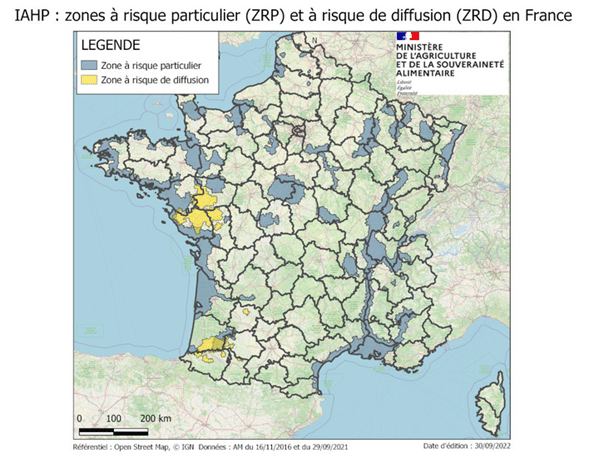 Le passage en risque élevé implique la mise en place des mesures de biosécurité renforcées dans les ZRP (zone à risque particulier ) et ZRD (zone à risque de diffusion) .