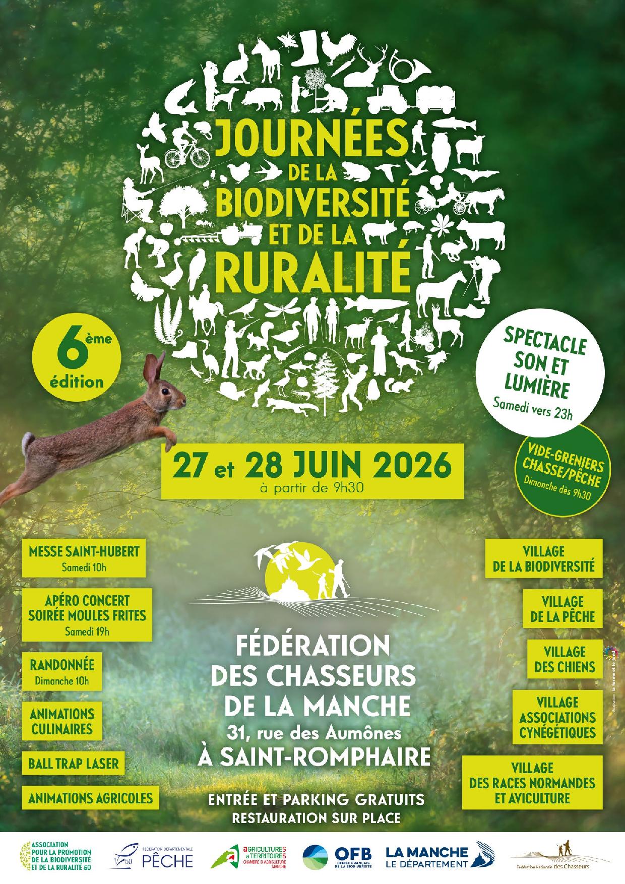 Pour la 6ème année consécutive, la FDC 50 organise sa grande journée festive pour mettre en valeur la biodiversité et la ruralité. Elle se déroulera les 27 et 28 juin prochain à Saint- Romphaire au siège social de la Fédération des chasseurs de la Manche.