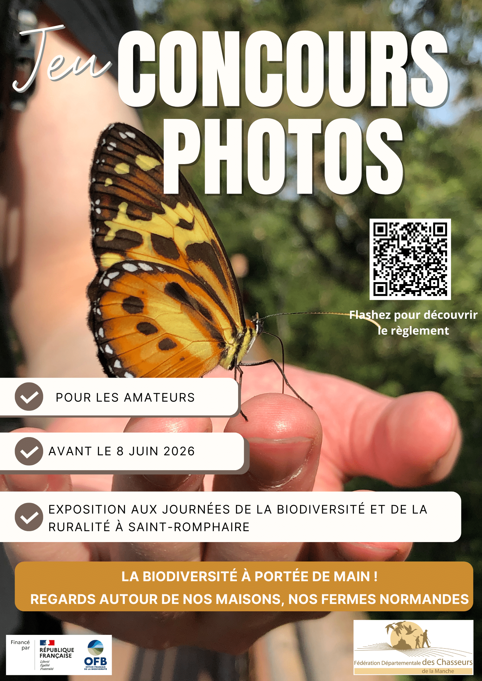 Dans le cadre des journées de la biodiversité et de la ruralité prévues les 27 et 28 juin 2026, la Fédération Départementale des Chasseurs de la Manche organise son traditionnel concours photos sur le thème « La nature à portée de main », regards autour de nos maisons, nos fermes normandes.