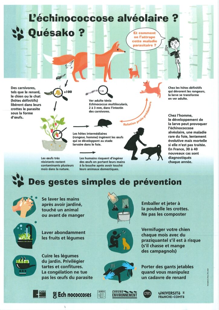 Cette maladie parasitaire, causée par le ver Echinococcus multilocularis, touche principalement les renards, mais aussi les chiens et d’autres carnivores sauvages.